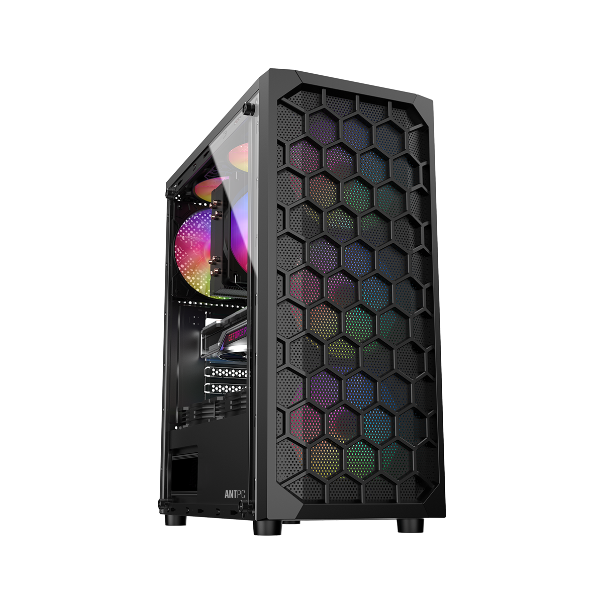 The ANT PC DORYLUS CL940N is a budget-friendly gaming desktop built for smooth 1080p performance. Powered by Intel Core i3-12100 and NVIDIA GeForce RTX 3050 6GB, it combines fast 8GB DDR4 memory with a 250GB NVMe SSD, delivering responsive gameplay, quick boot times, and excellent value.