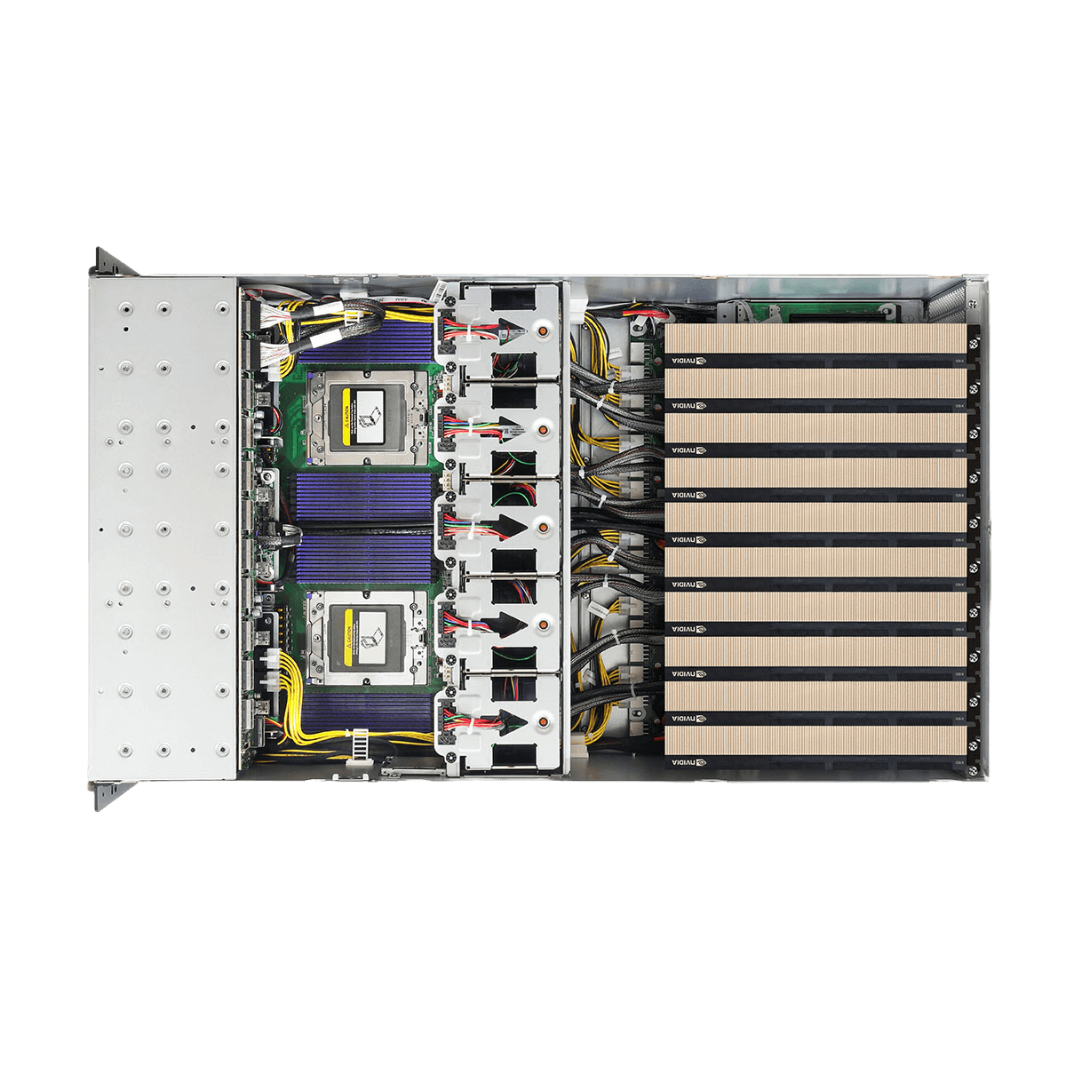 Powered by AMD EPYC™ 9004 Series processors, this 4U high-density server is built for AI, HPC, and data-intensive workloads. With PCIe 5.0 architecture and support for up to 10 full-height, full-length GPUs, it delivers exceptional compute performance and scalability.