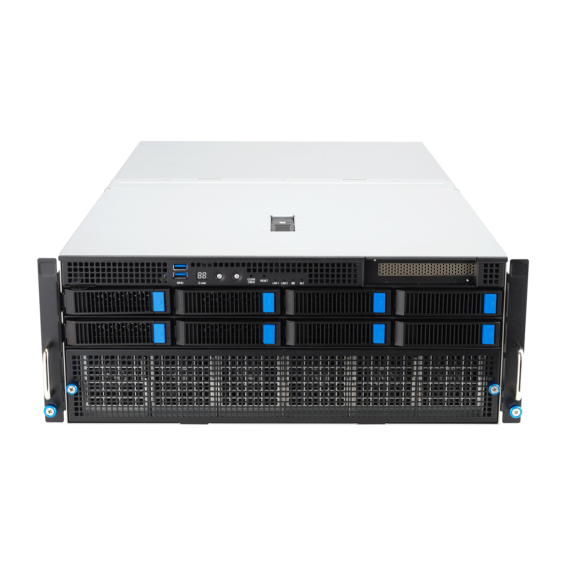 AMD EPYC 9005 dual-processor 4U server that supports eight dual-slot NVIDIA® H200 GPUs or NVIDIA RTX PRO 6000 Blackwell Server Edition, up to 24 DIMM, two PCIe®5.0 slots and up to six U.2 NVMe drives.