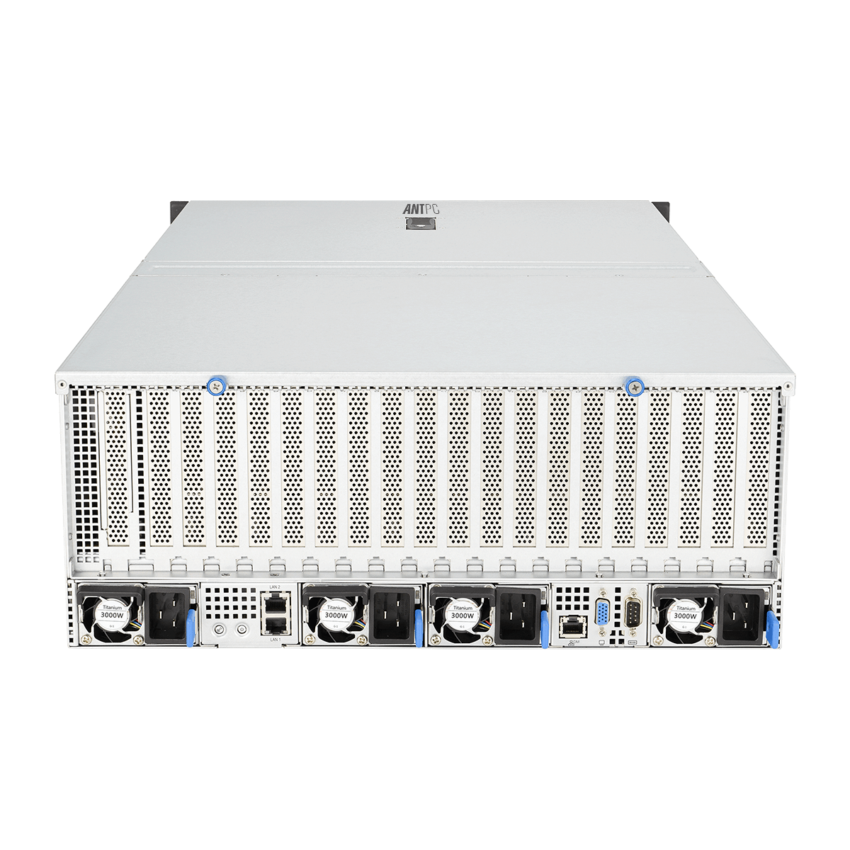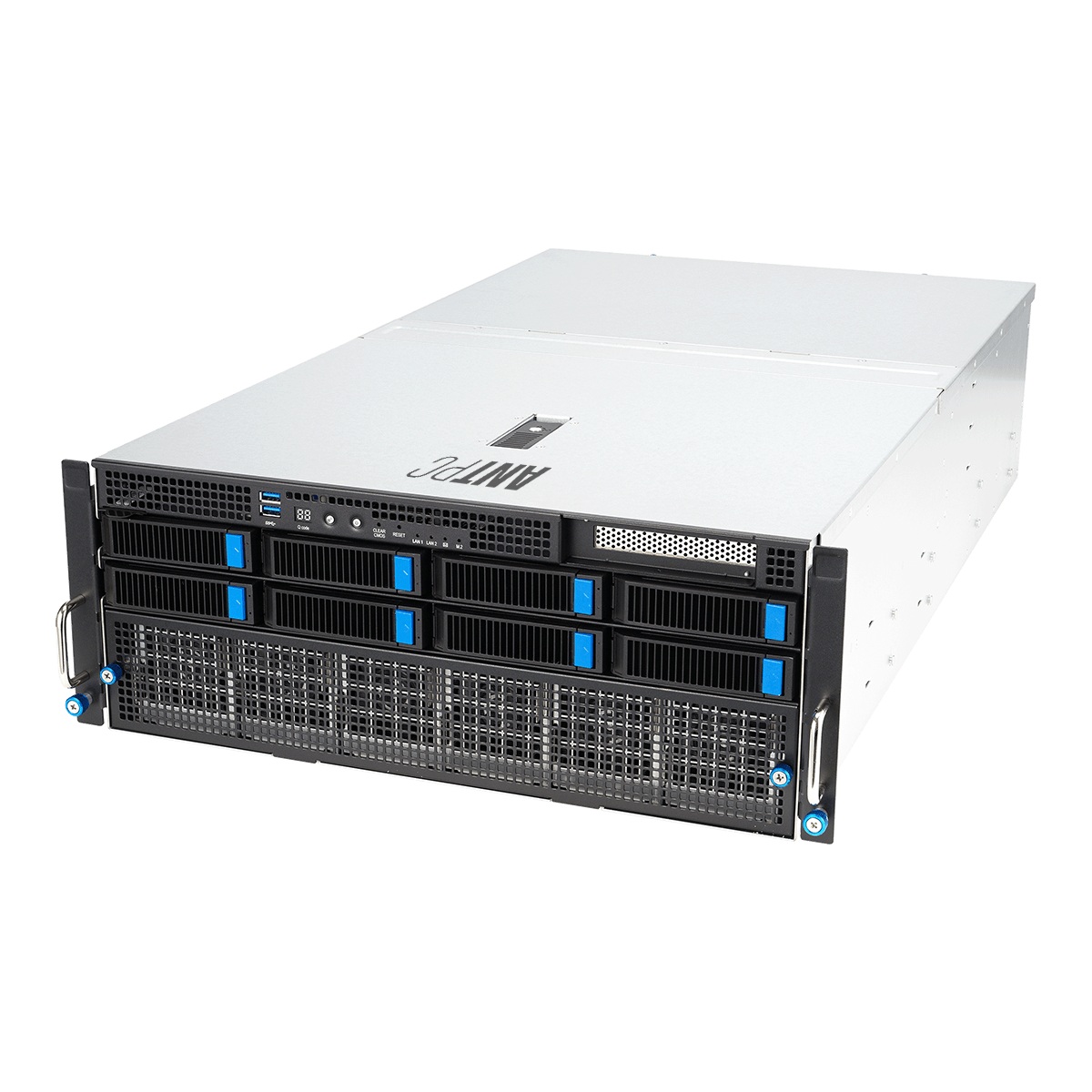 AMD EPYC 9004 dual-processor 4U GPU server that supports eight dual-slot GPUs, up to 24 DIMM, 11 PCIe 5.0 slots, Dual NVMe, four 3000W Titanium power supplies, OCP 3.0 and ASMB11-iKVM