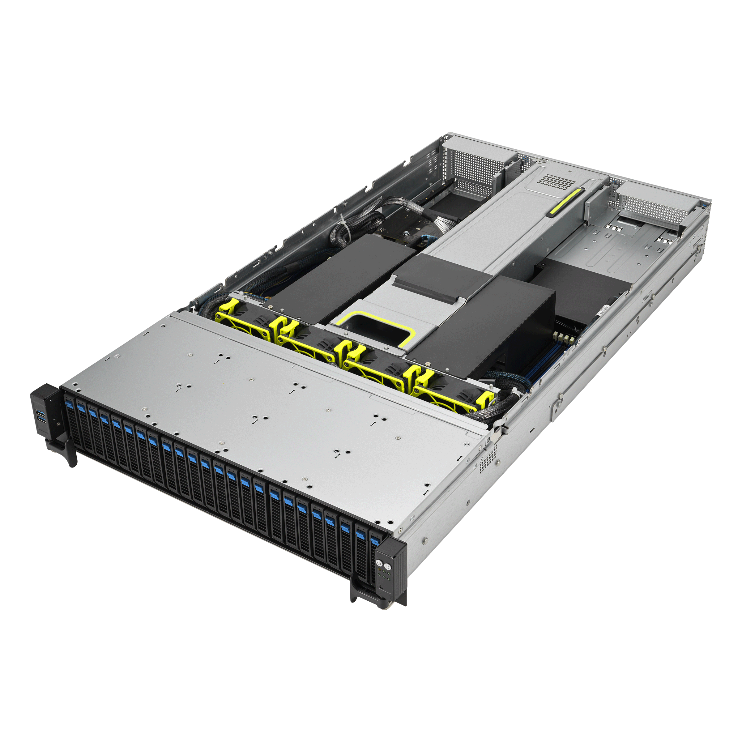 2U dual-socket server powered by 5th Gen Intel® Xeon® Scalable processors, delivering up to 21% higher performance per watt for enhanced AI inference, training, and compute efficiency. Designed for modular scalability and seamless data center integration, it supports up to 24 all-flash NVMe drives and four PCIe 5.0 slots for high-bandwidth expansion. The advanced EVAC air-cooling solution ensures optimal thermal management for processors with higher TDP, maintaining peak reliability. Integrated ASUS ASMB11-iKVM and Control Center software enable secure remote management, while support for 1 dual-slot GPU, including Intel Data Center GPU Flex and NVIDIA A100, delivers readiness for AI and HPC workloads.