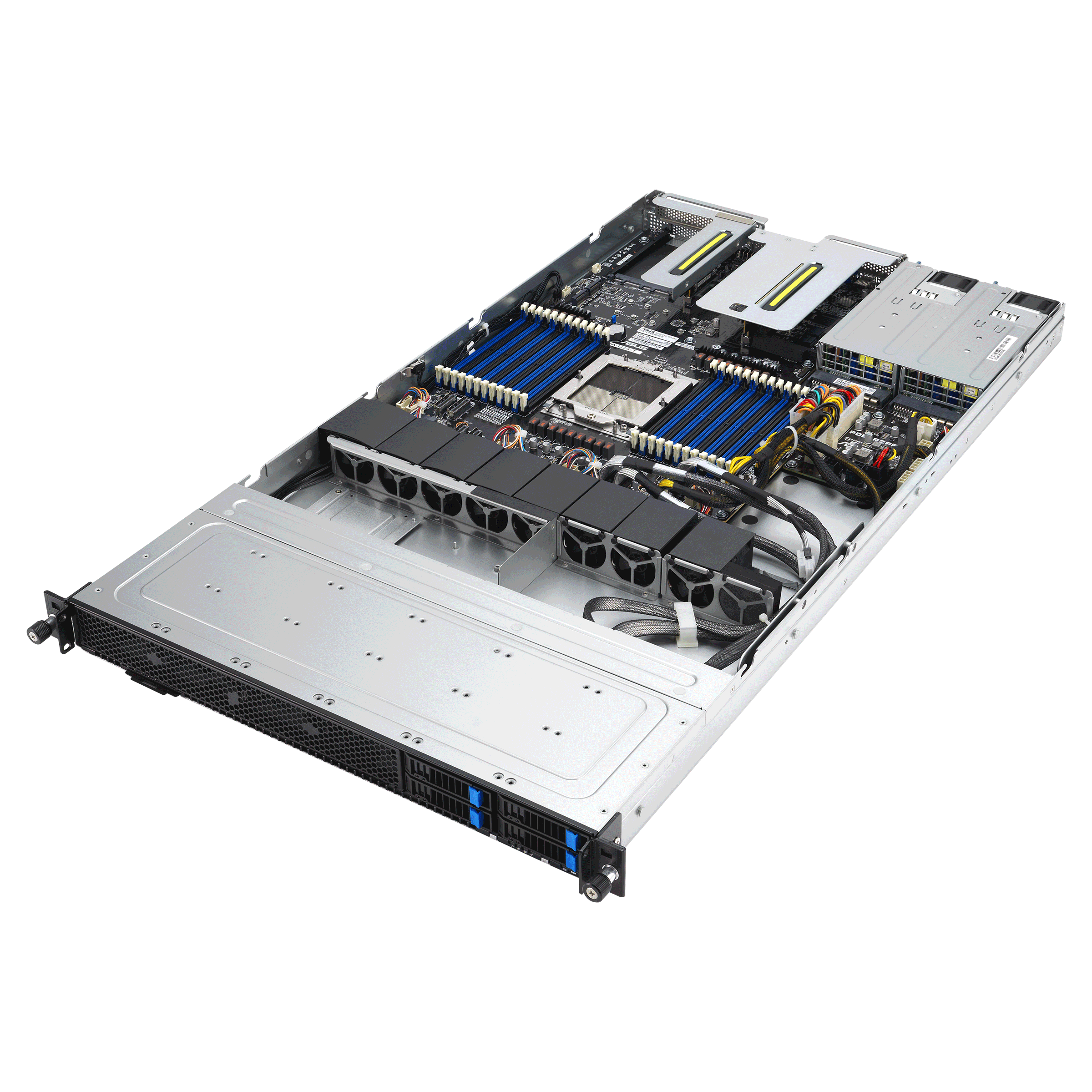 1U dual-socket server powered by AMD EPYC™ 9005 processors with up to 192 Zen 5c cores, supporting 24 DDR5 memory at 5200 MHz for exceptional compute density and energy efficiency. Designed for scalable enterprise performance, it features up to four NVMe drives and three PCIe 5.0 slots for high-bandwidth expansion and flexible storage. An advanced EVAC air-cooling solution optimizes thermal management for CPUs up to 450 W TDP, ensuring sustained peak output. Integrated ASUS ASMB11-iKVM and Control Center enable comprehensive remote management and security through hardware-level Root-of-Trust. Engineered for AI and HPC workloads, it supports up to two single-slot GPUs for accelerated data processing.