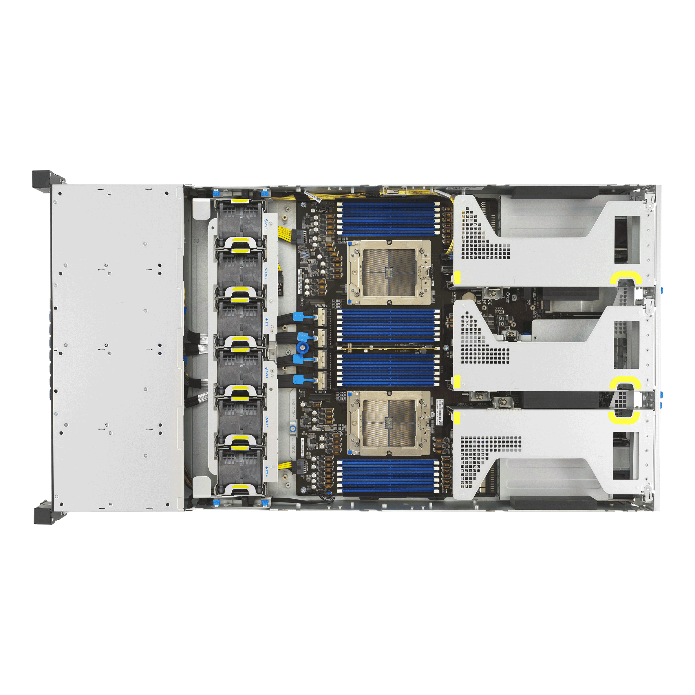 2U dual-socket server powered by AMD EPYC™ 9005 processors, supporting up to 24 DDR5 RDIMMs at 6000 MHz for exceptional performance across AI, HPC, and data-intensive workloads. Built on the DC-MHS architecture for modular scalability and seamless data center integration, it features flexible storage with eight NVMe/SATA/SAS drives and eight PCIe 5.0 expansion slots. The optimized EVAC air-cooling system ensures efficient thermal management for CPUs and up to three 400W dual-slot GPUs, maximizing performance density. A tool-less chassis design with top-cover handle simplifies serviceability, while PFR FPGA Root-of-Trust and TPM 2.0 provide enhanced firmware protection and system security.
