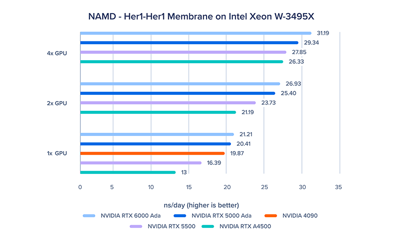 ANT PC’s NAMD-optimized workstations deliver remarkable scalability on Intel Xeon platforms, achieving superior ns/day performance across NVIDIA RTX GPUs—ideal for molecular dynamics simulations demanding speed, precision, and computational efficiency.